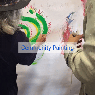 See our pilot session for Community Art Day. An event open to everyone, we invite the village to create together. All ages painting together, and connecting through the power of painting! We put a bit piece of canvas on the wall of the studio and invited people to grab a brush and jump in. We were surprised how many people showed up, and how much everyone really focused on the painting. All ages painting together is a special thing. We hope to do this over a number of months, and then celebrate all the creativity with an exhibit of them all. Alongside that we will collect people stories, and their experiences to see how community art benefits small villages.